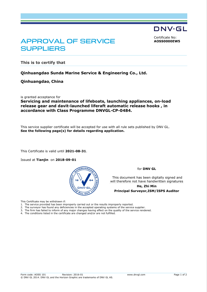 秦皇島順達船務有限公司位于美麗的海濱城市、中國北方著名的能源輸出大港--秦皇島。公司從事于船舶修理、物料供應、水下檢測、船體測厚、消防救生設備及救生艇檢驗、電氣自動化修理等服務。 公司自1997年成立至今,先后為國內外船東修理、檢驗各類船舶萬余艘,積累了豐富的施工經驗。公司現有場地100余畝,員工30余人,以及工程用車若干臺。我們公司一直本著嚴以律己、真誠待人、精益求精、信譽至上的經營理念,以優質的服務、專業的施工、合理的收費,得到了國內外船東的廣泛認可,贏得了良好的口碑和信譽。 公司已取得了中國船級社(CCS)、美國船級社(ABS)、日本船級社(NK)、德國船級社(DNV GL)等各個船級社的消防救生和救生艇檢驗資質, ...